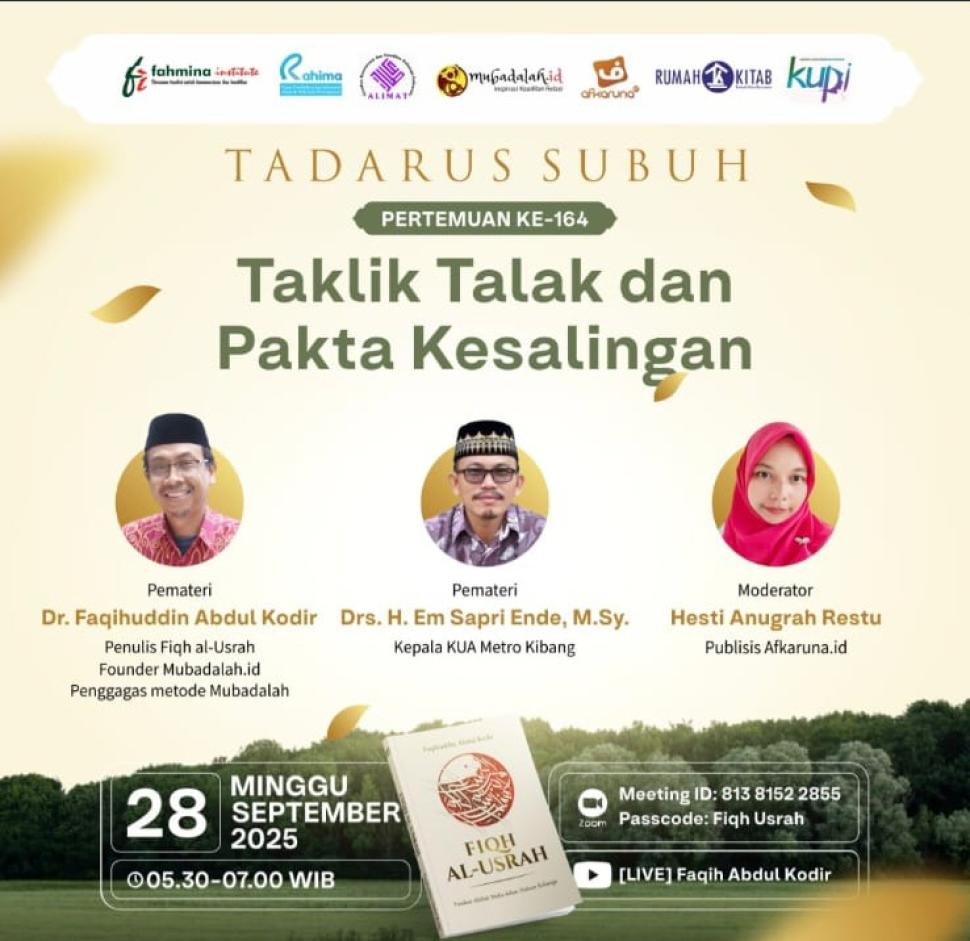 KUA Kepala KUA Metro Kibang Kupas Tuntas Taklik Talak dan Pakta Kesalingan di Tadarus Subuh Online Selasa, 30 September 2025