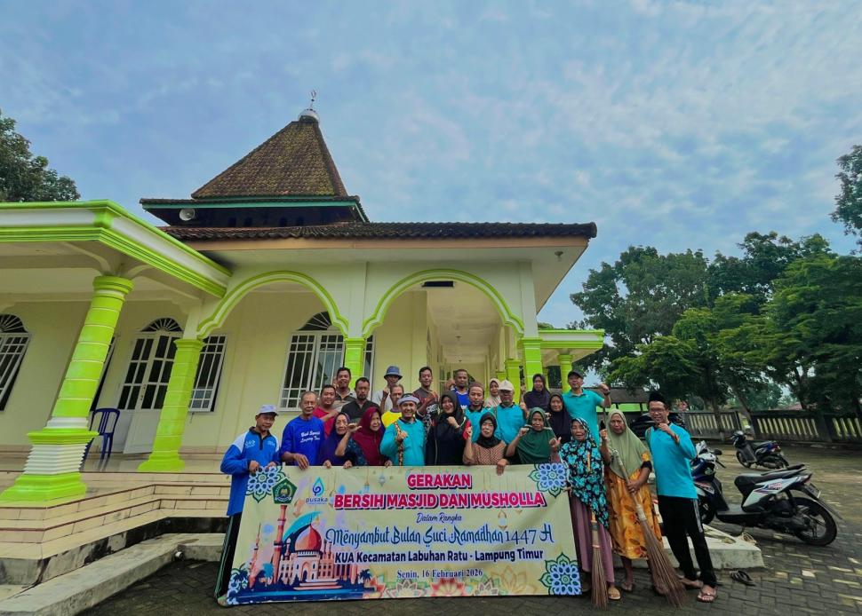 KUA GEBER BBM 2026, Kepala KUA Labuhan Ratu Pimpin Aksi Bersih Masjid Sambut Ramadhan 1447 H Senin, 16 Februari 2026