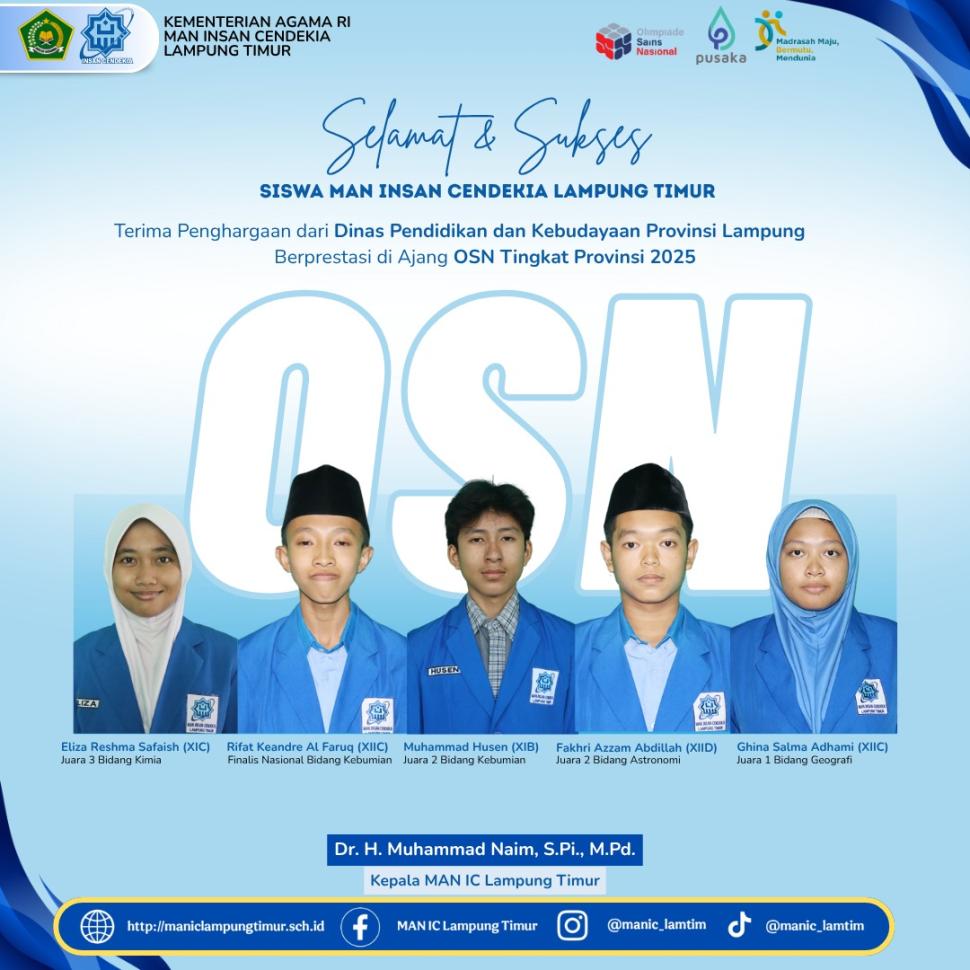 Madrasah Berprestasi di Ajang OSN-P 2025, Lima Peserta Didik MAN IC Lampung Timur Terima Penghargaan dari Dinas Pendidikan dan Kebudayaan Provinsi Lampung Sabtu, 01 November 2025