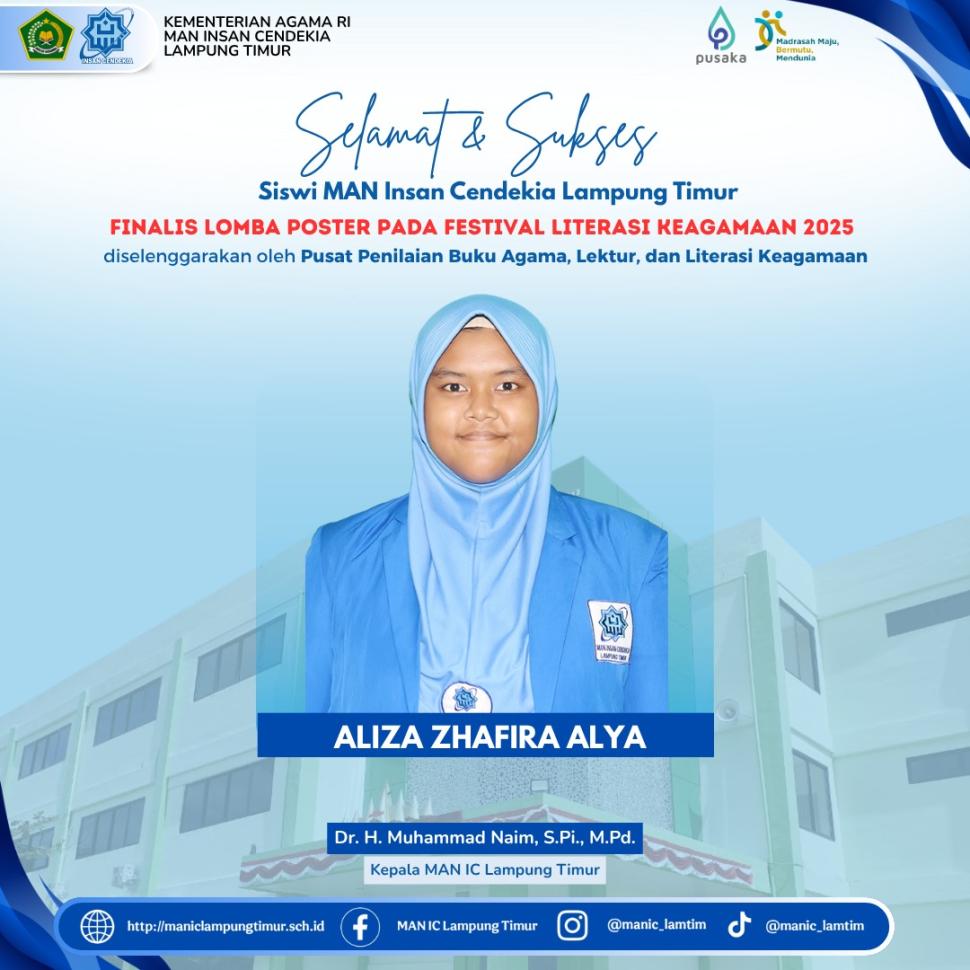 Madrasah Aliza, Siswi MAN IC Lampung Timur, Melaju ke Final Nasional Lomba Poster Festival Literasi Keagamaan 2025 Selasa, 04 November 2025