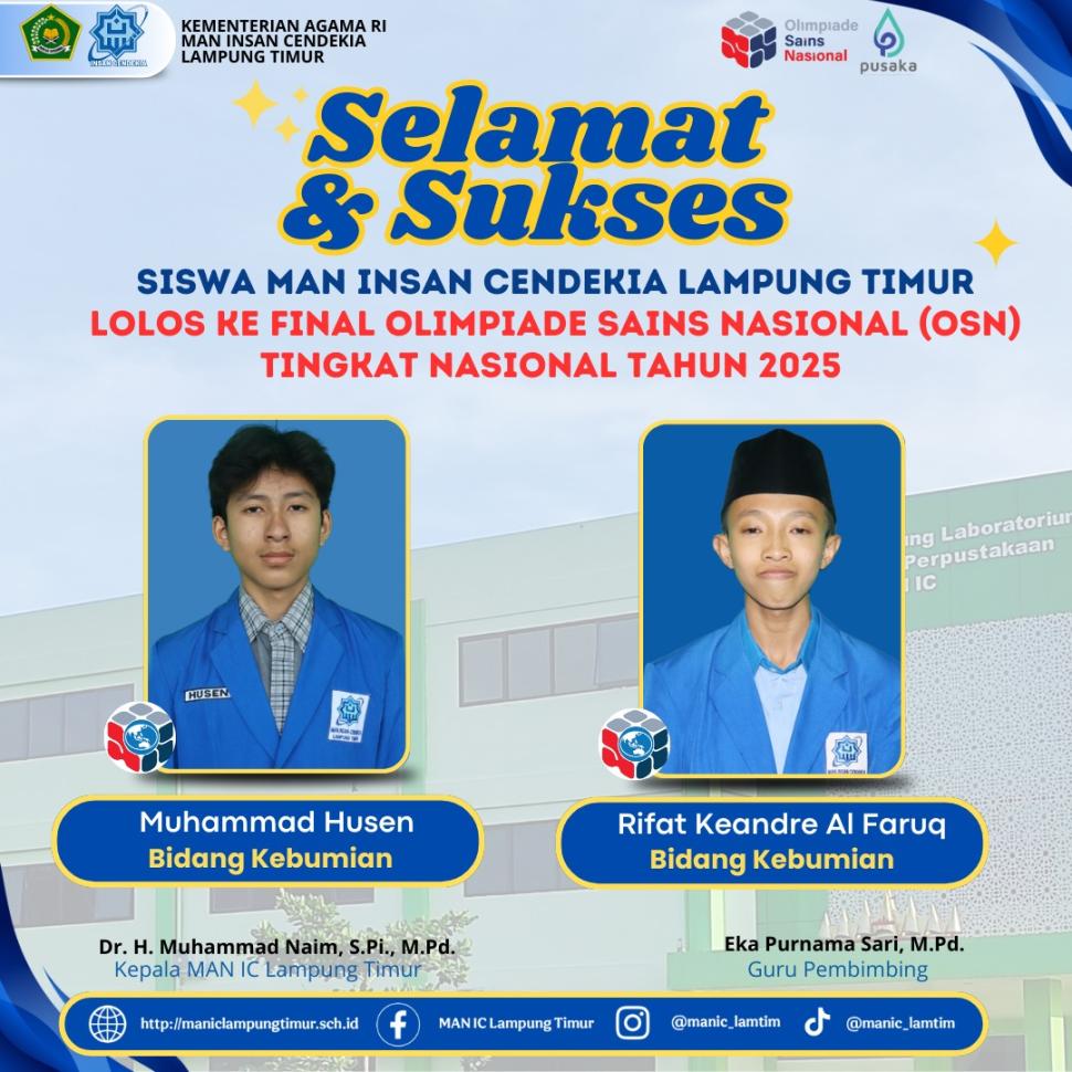 Madrasah Husen & Rifat : Dua Siswa MAN IC Lampung Timur Tembus Final OSN Nasional 2025 Selasa, 16 September 2025
