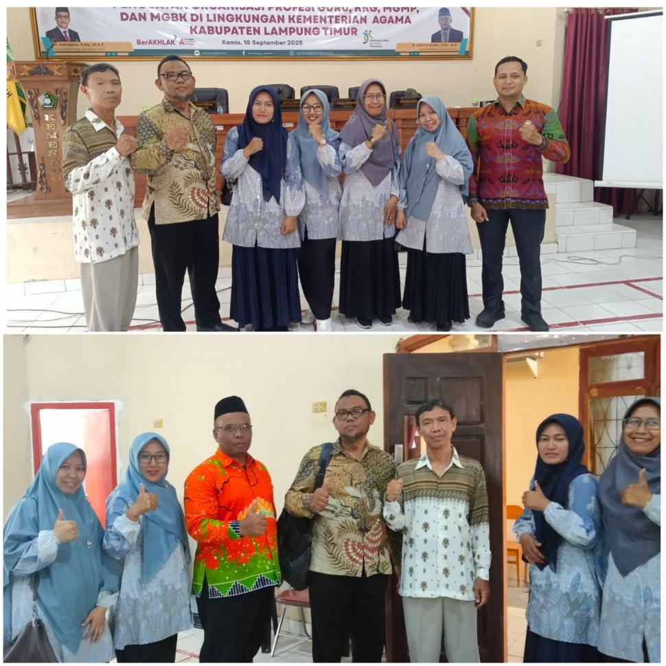 Madrasah Dewan Guru MTsN 1 Lampung Timur Ikuti Penguatan Organisasi Profesi Guru, KKG, MGMP, dan MGBK di Kemenag Lampung Timur Kamis, 18 September 2025