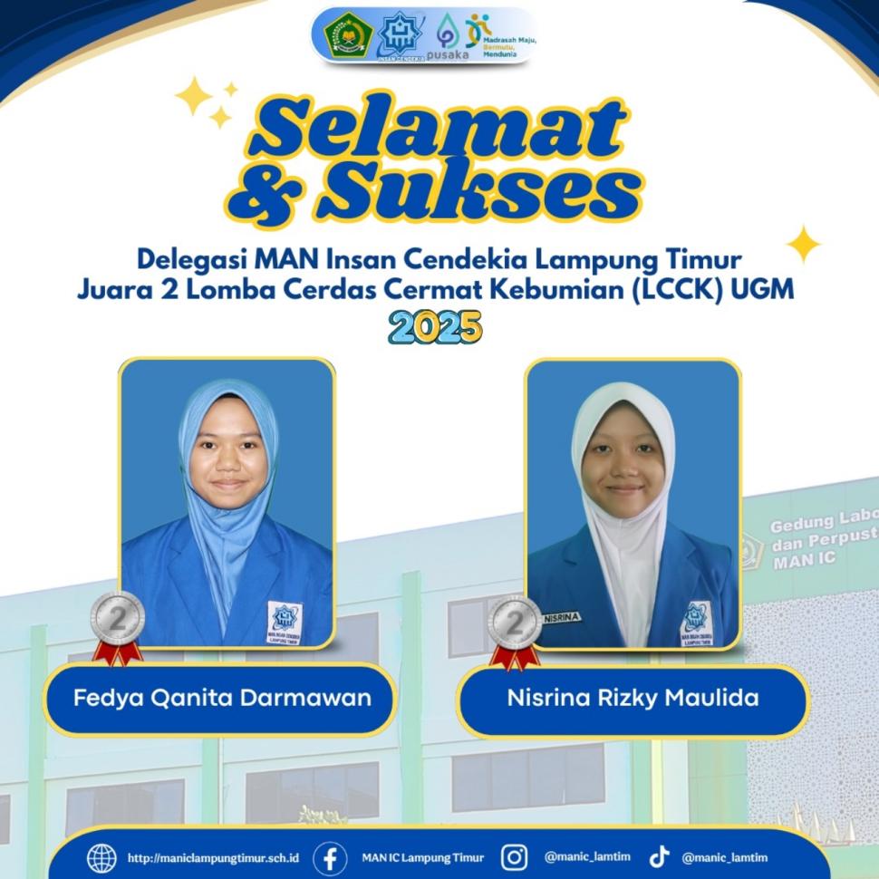 Madrasah Fedya & Nisrina, Tim Kebumian MAN IC Lamtim Raih Juara 2 LCCK Geoweek 2025 Tingkat Nasional di UGM Rabu, 10 September 2025
