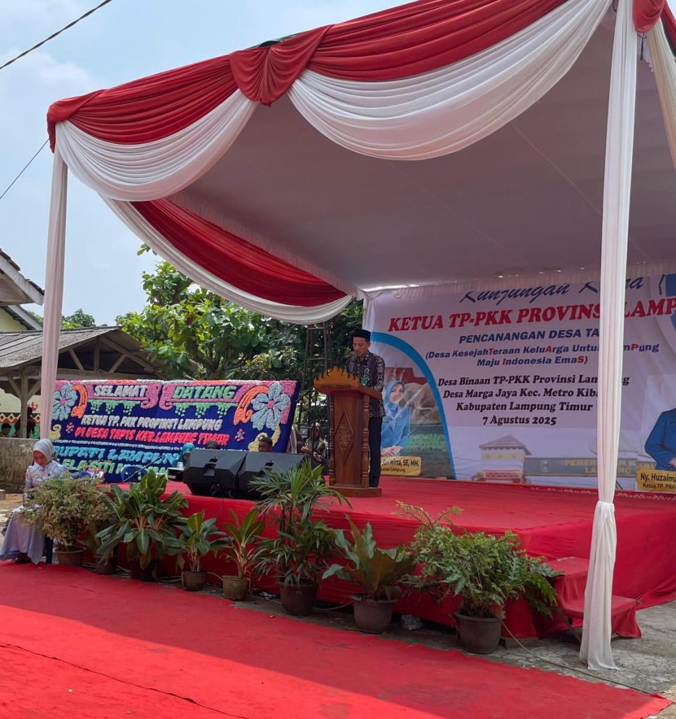 Metro Kibang, Lampung Timur — Desa Margajaya, Kecamatan Metro Kibang, menjadi pusat perhatian pada Kamis, 7 Agustus 2025. Ratusan tokoh perempuan, pejabat daerah, dan unsur masyarakat tumpah ruah dalam kegiatan kunjungan kerja Ketua TP PKK Provinsi Lampung, yang dirangkaikan dengan pencanangan Desa Tapis, program strategis pemberdayaan ekonomi berbasis budaya lokal.