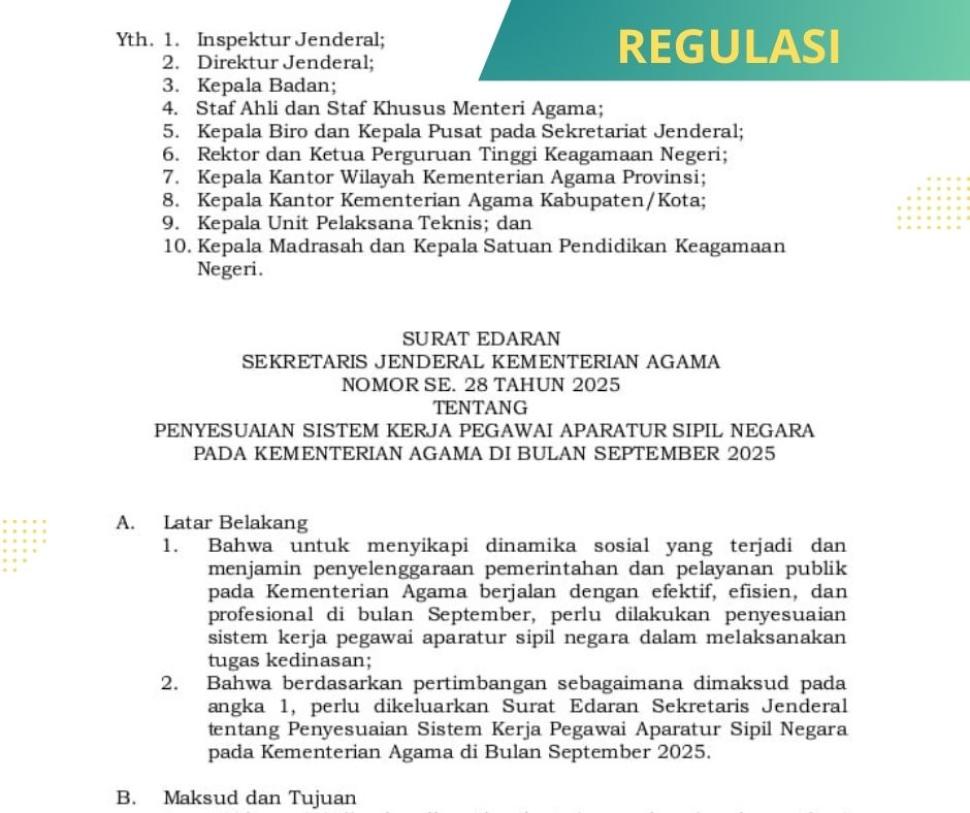 TENTANG PENYESUAIAN SISTEM KERJA PEGAWAI APARATUR SIPIL NEGARA PADA KEMENTERIAN AGAMA DI BULAN SEPTEMBER 2025