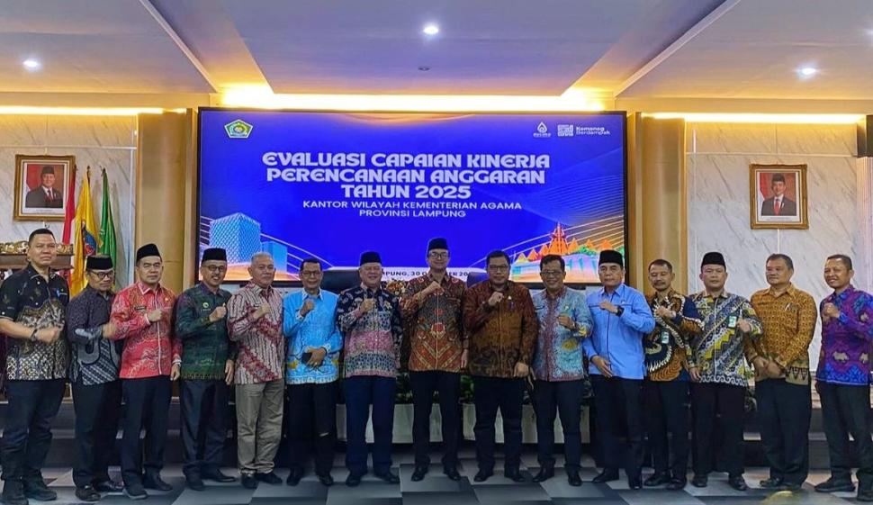 Bandar Lampung (Humas) — Kepala Kantor Kementerian Agama Kabupaten Lampung Timur, Indrajaya, bersama staf keuangan Andrian Harmoko, menghadiri kegiatan Evaluasi Capaian Kinerja Perencanaan dan Penganggaran Tahun 2025, yang digelar pada Kamis (30/10/2025) di Aula Saibatin Kantor Wilayah Kementerian Agama Provinsi Lampung.