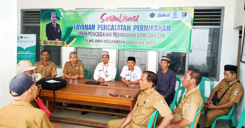 Dalam arahannya, Kepala KUA Kecamatan Labuhan Ratu, Solihin Panji menjelaskan bahwa KUA sebagai garda terdepan pelayanan keagamaan memandang perlu mengadakan sosialisasi mengenai arti penting mencatatkan perkawinan di KUA dan dampak negatif nikah siri dan dini serta solusi bagi pasangan yang sudah terlanjur melakukan nikah siri di masa lampau.