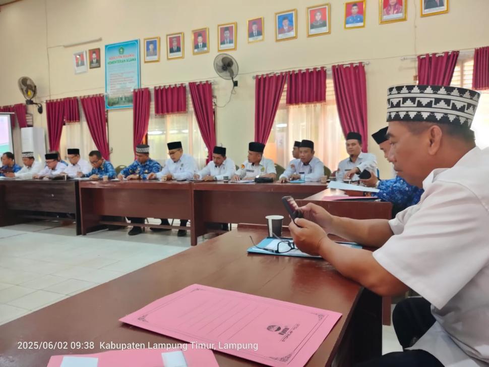 Lampung Timur Ketua Tim Kecamatan Raman Utara Hadiri Rakor Pencegahan Konflik Keagamaan di Kemenag Lampung Timur Senin, 02 Juni 2025