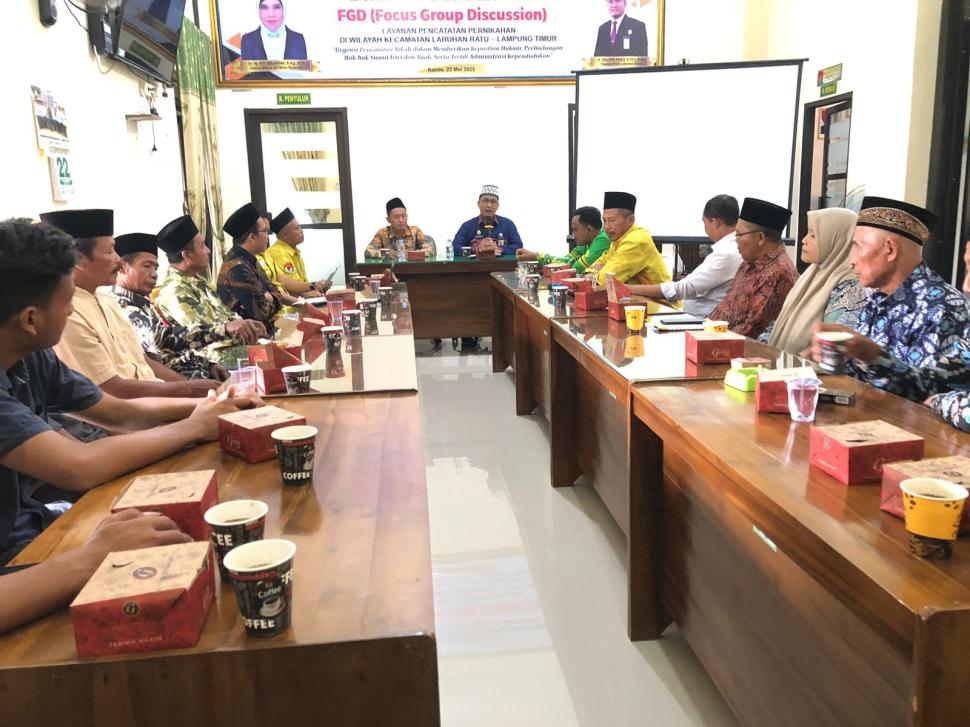 Lampung Timur Sosialisasikan Isbat Nikah Terpadu, KUA Labuhan Ratu gelar FGD dengan perangkat desa dan tokoh agama Kamis, 22 Mei 2025