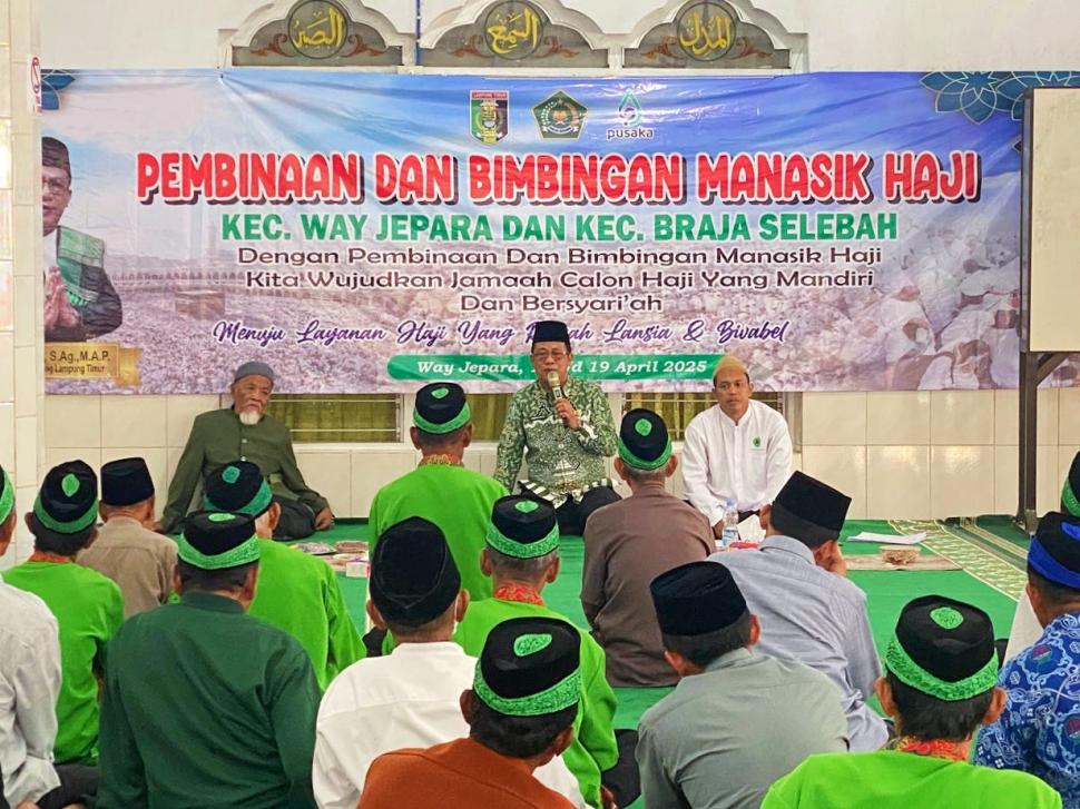 Lampung Timur Kepala Kemenag Lamtim Berikan Pembinaan Manasik Haji di Kecamatan Way Jepara Sabtu, 12 April 2025