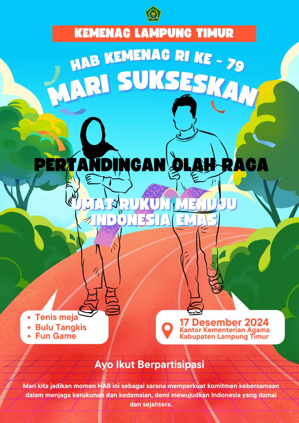 Lampung Timur "Meriahkan HAB ke-79, Kemenag Lampung Timur Akan Awali dengan Pertandingan Olahraga" Senin, 16 Desember 2024