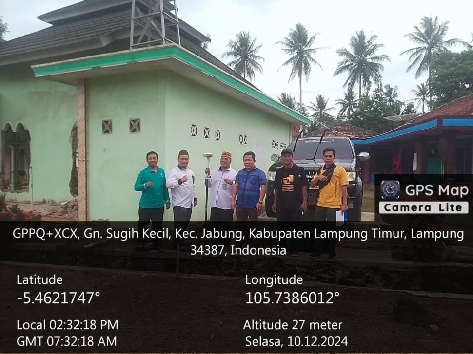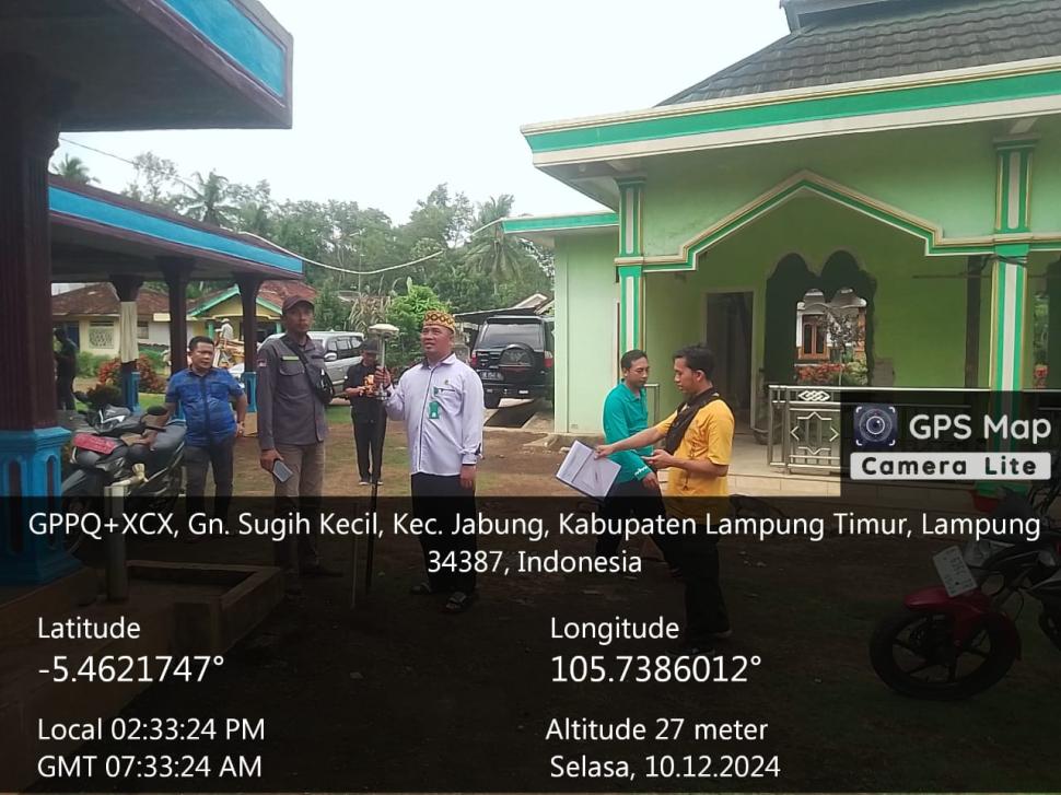 Lampung Timur Koordinasi Pengukuran Tanah Wakaf oleh Kementerian Agama Kabupaten Lampung Timur dan Kepala KUA Jabung Selasa, 10 Desember 2024