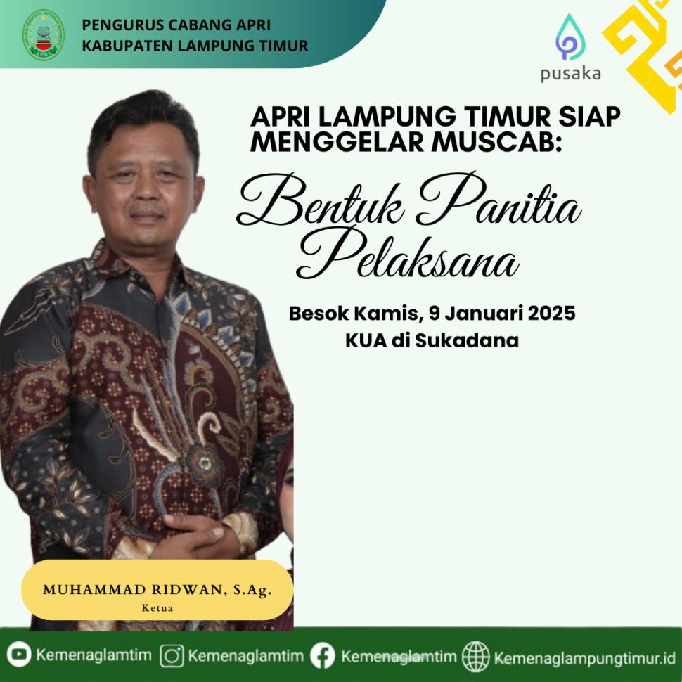 Lampung Timur APRI Lampung Timur Siap Menggelar Muscab: Panitia Dibentuk Besok di KUA Sukadana Rabu, 08 Januari 2025