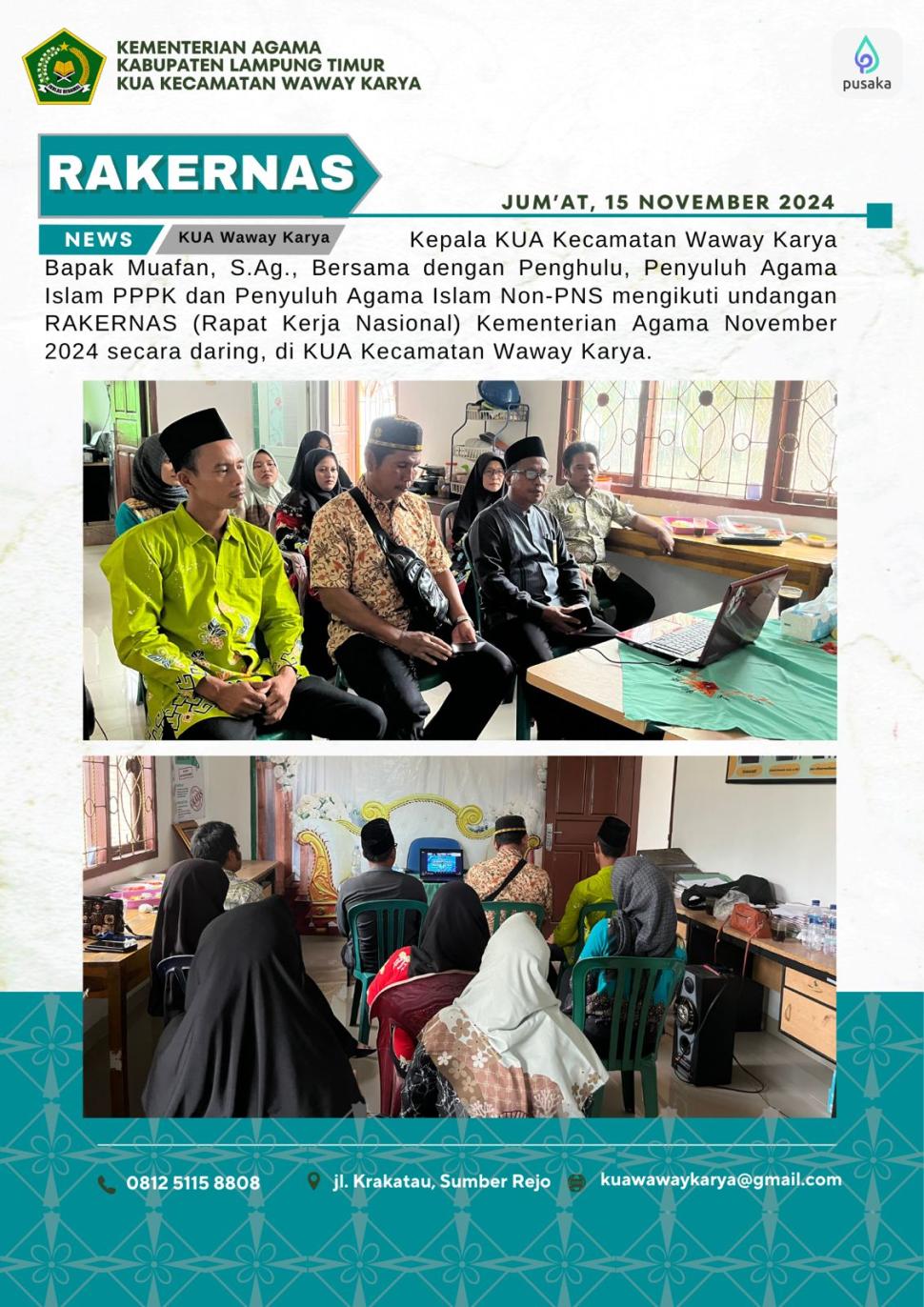 Lampung Timur KUA Raman Utara Ikuti Rakernas Kemenag 2024 , Antusias Gelar di KUA secara Daring Jumat, 15 November 2024