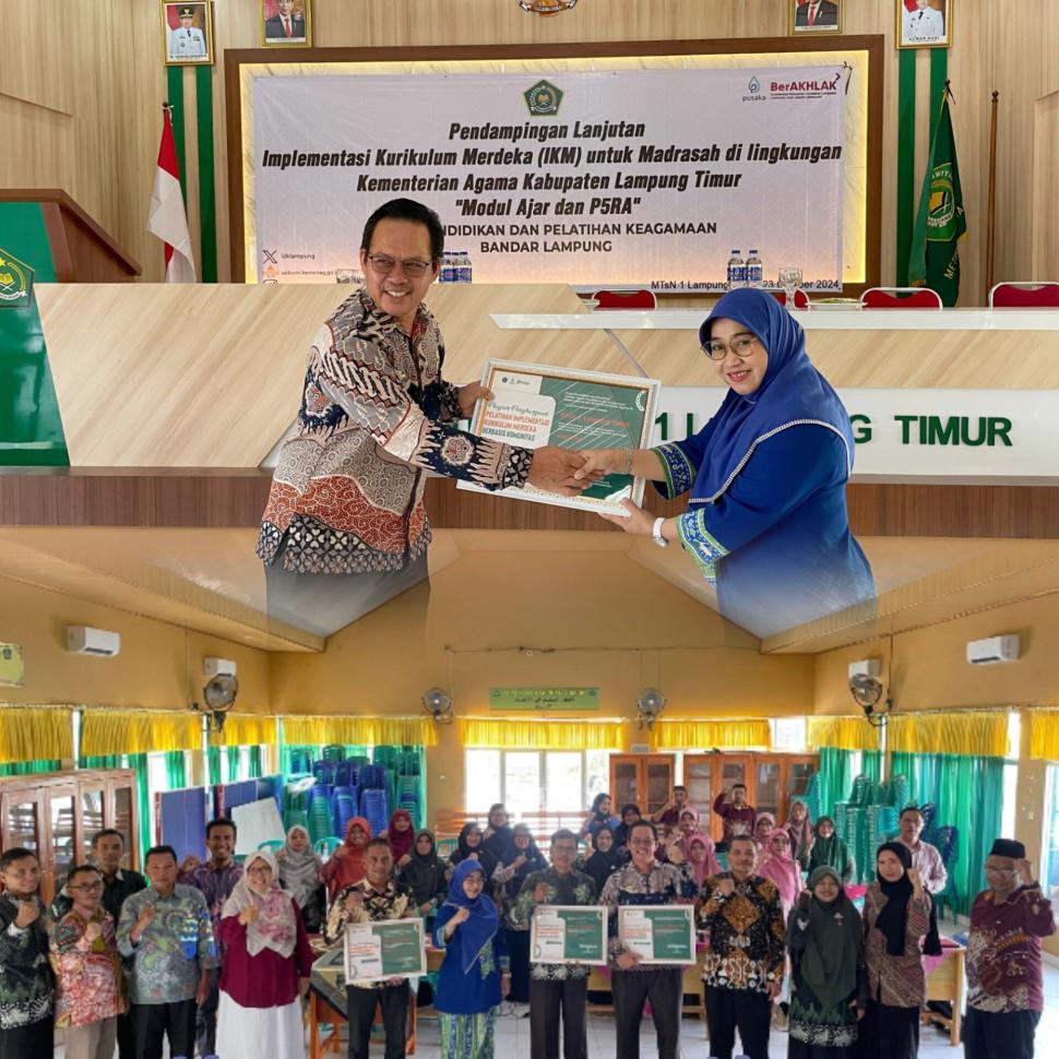 Lampung Timur Pendampingan IKM-BK Modul Ajar dan P5RA di MTsN 1 Lampung dari Pusdiklat Teknis Kemenag Jakarta Rabu, 23 Oktober 2024