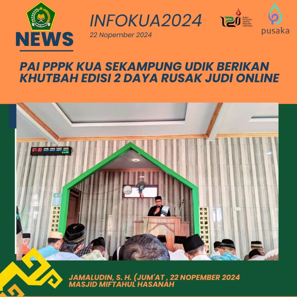 Lampung Timur Penyuluh Agama Islam Kecamatan Sekampung Udik: Edisi Kedua Sampaikan Materi Khutbah Daya Rusak Judi online Jumat, 22 November 2024