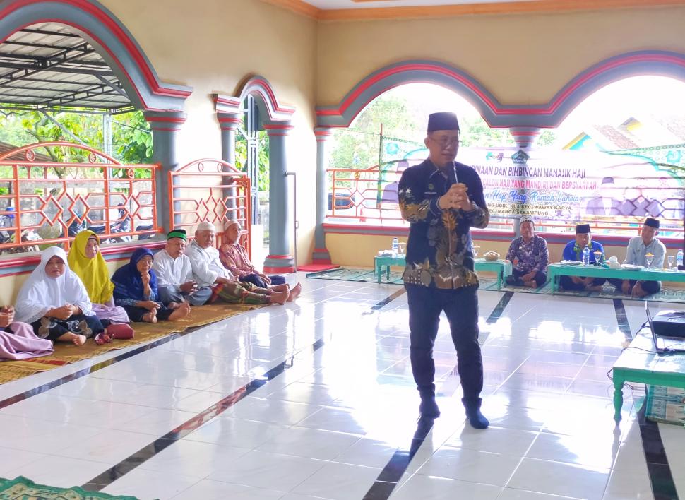 Lampung Timur H. Liwon, S.Ag., M.Pd.. Membuka Resmi Kegiatan Pembinaan dan Bimbingan Kelompok Manasik Haji 3 Kecamatan di Kecamatan Sekampung Udik Pagi ini Rabu, 10 Mei 2023