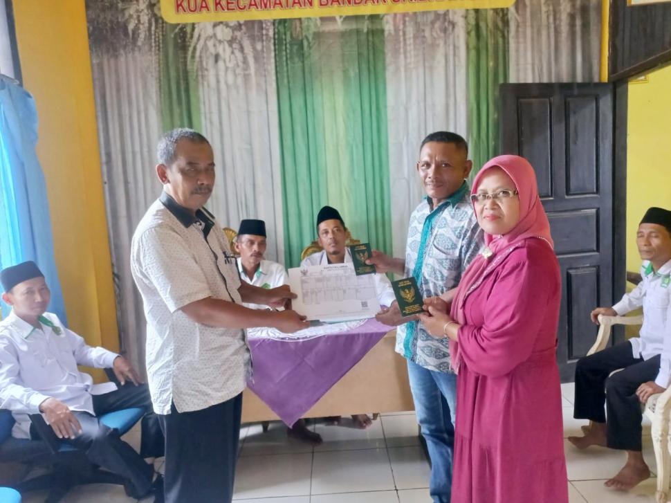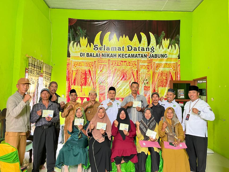 Lampung Timur Kepala KUA Jabung Serahkan Dokumen Nikah dan Kartu Keluarga kepada Peserta Sidang Isbat Terpadu Senin, 11 Agustus 2025